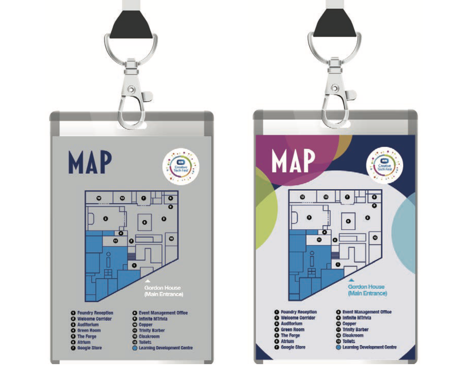 We designed all the event's visuals to reflect back on the brand's core values and main communication concepts. This included the lanyards, general print media, motion graphics and stage visuals.