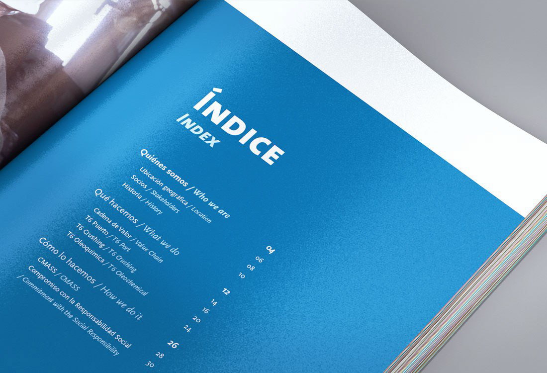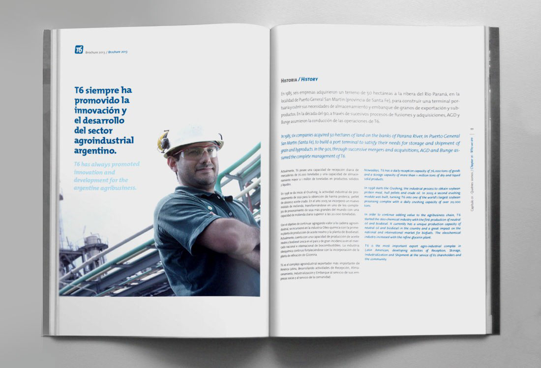 Not only this report meets the visual brand guidelines, but it also works as an independent piece of design. One of the challenges during the creative process was the development of a clear way to navigate the information so complex and varied. Our solution was to develop an accurate, orderly grid, and the division of the information in sections so that the reader will always know his location in the book as he goes on. The result is powerful and speaks for itself, and indeed it does justice to the importance of the company in Argentina and all over the world.